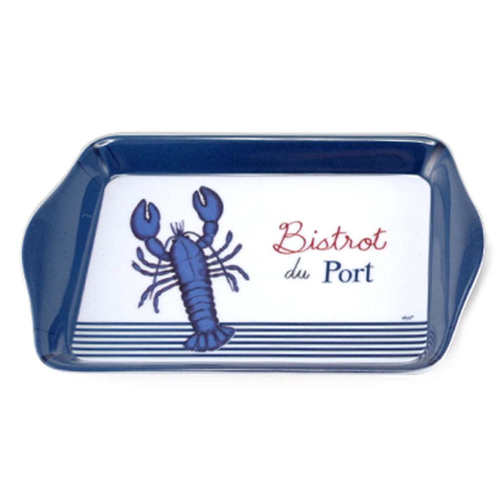 Les Trésors De Lily [A2452] - Kleines Melamintablett 'Bistrot du Port' blau und weiß (Hummer) - 21 x 14 cm
