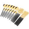 Lieferinhalt:6Pcs Essmesser + 6Pcs Dinner Fork + 6Pcs Dinner Spoon + 6Pcs Teelöffel.