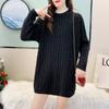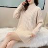 Pullover Damen Herbst und Winter Spitze halber hoher Kragen Strick über Knie langärmlig ausländisch einfarbig lässig Pullover weiblich