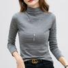 T Shirt Frauen Langarm Mode Camisetas Elastische Ropa De Mujer Rollkragen Gestreiften T-shirt Warme Tops Grundlegende T-shirts