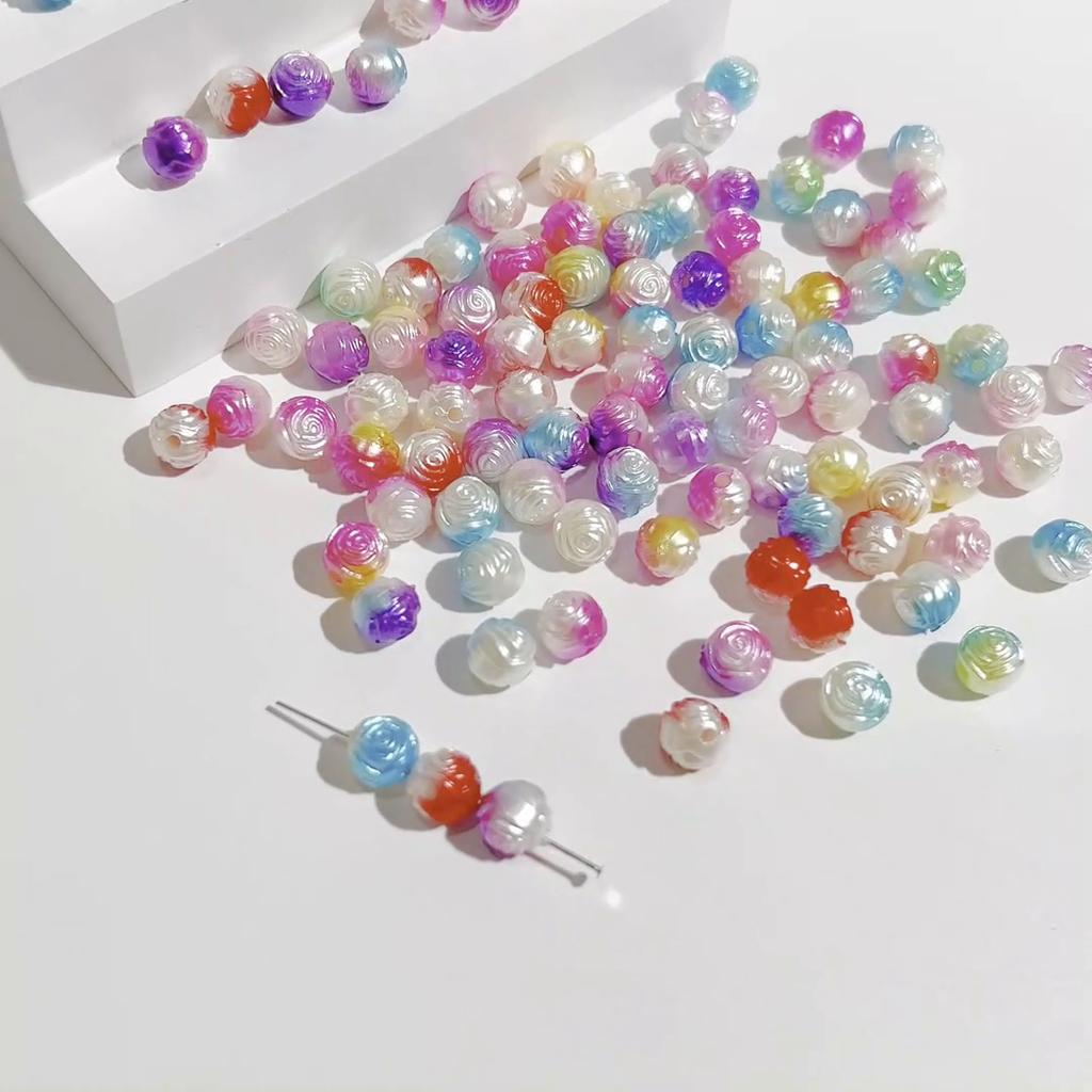 ABS Pearl Rose Flower Beads 8mm Floral Charms for DIY Jewelry Craft 100 Pcs/Bag