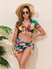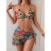 Frauen Sexy Dreieck Split Drei Stück Bikini Anzug Set Krawatte Seite G-String Tanga Badeanzug Sling Stil Druck Farbe