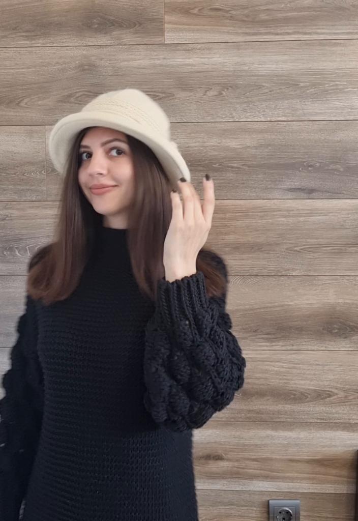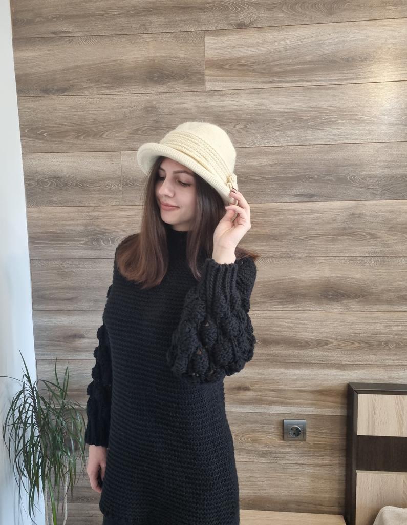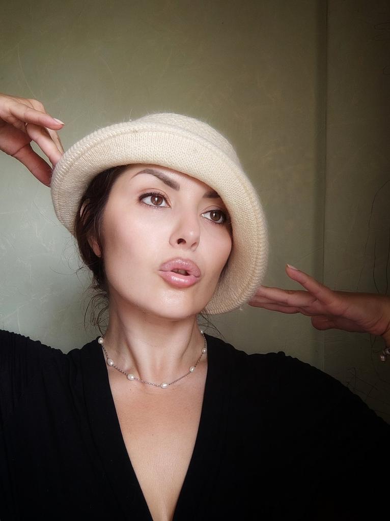 Ein Hut für alle Hüte. Ich liebe Retro-Looks. Sie sind so... feminin! Mütze aus Polyester mit Kaninchenhaarzusatz. Erstaunlich warm. Und schön zugleich. Geeignet für jede Kopfgröße, voraussichtlich ab 56. Stellen Sie sich diesen Hut, diesen Mantel, diese kleinen Absätze vor ... Mmm... Ein wunderschöner Look für die Kälte))