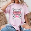 Katze Haustier T-Shirt Top Mode T-Shirt 90er Jahre süßer schöner Stil Trend süße Kleidung lässig Kurzarm Frauen Print Lady Female Grafik T-Shirt