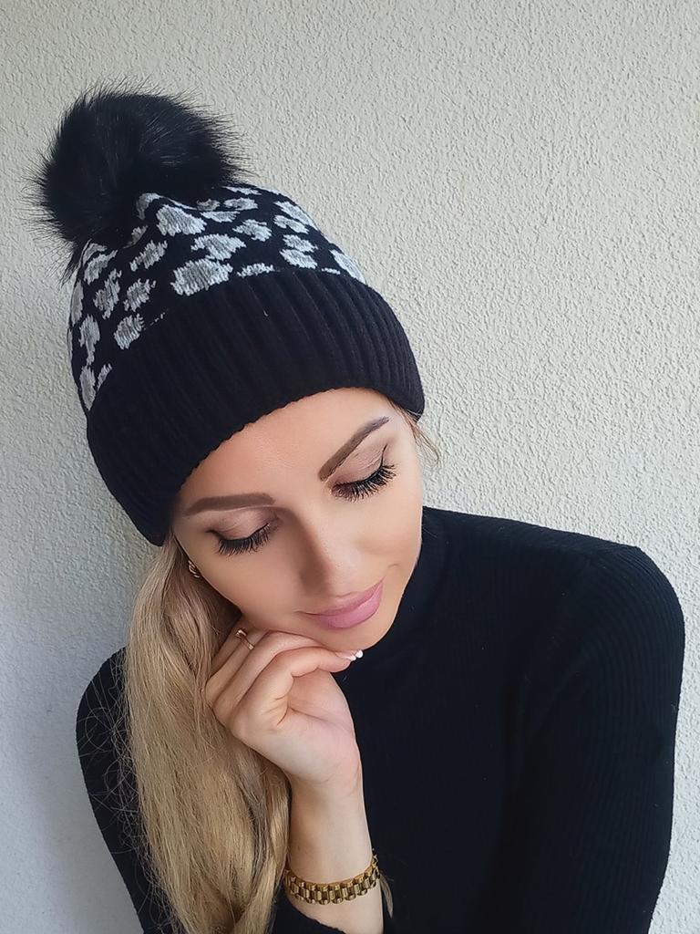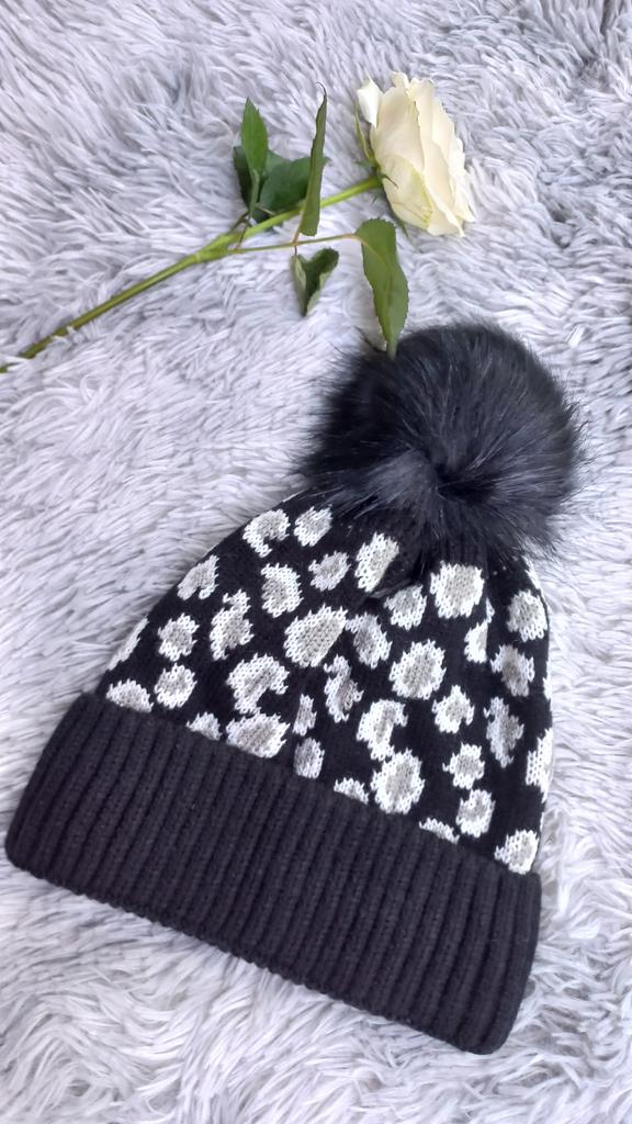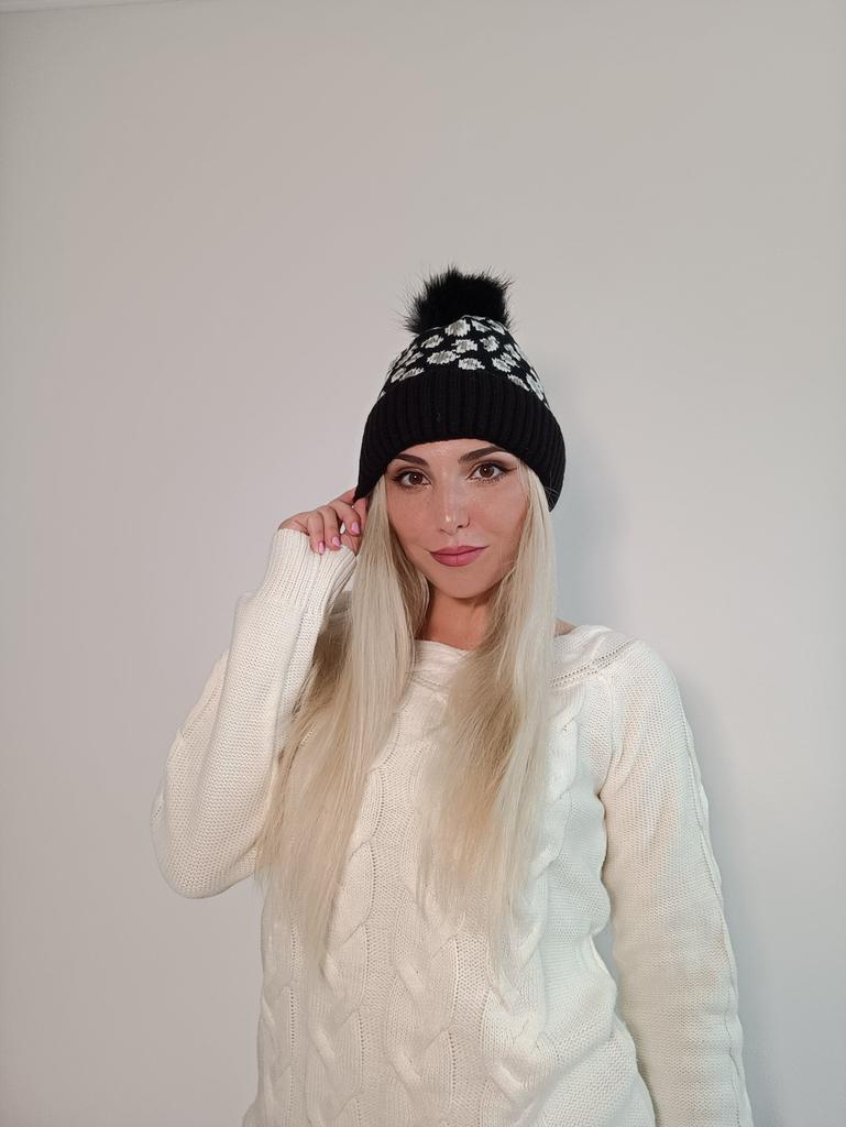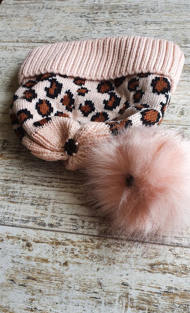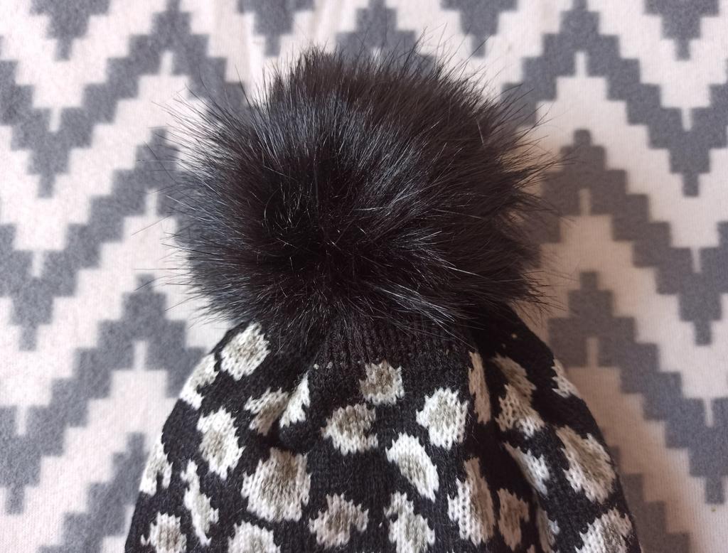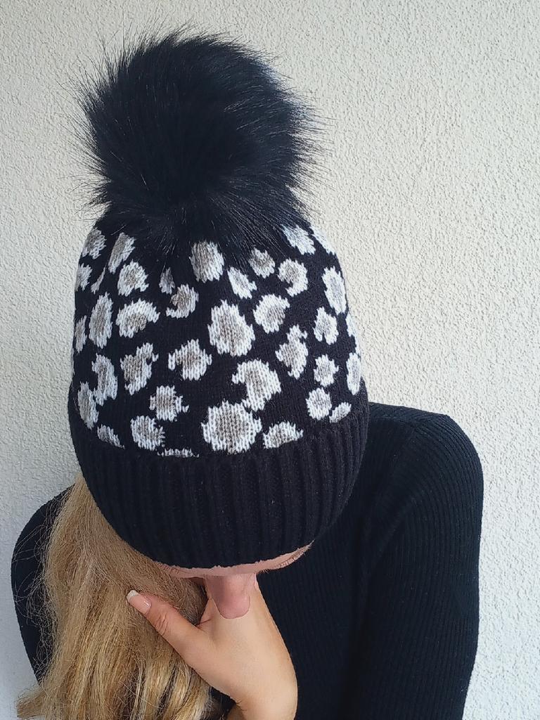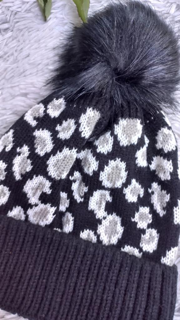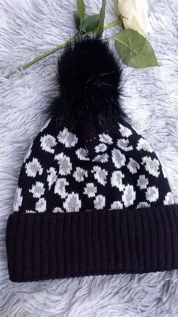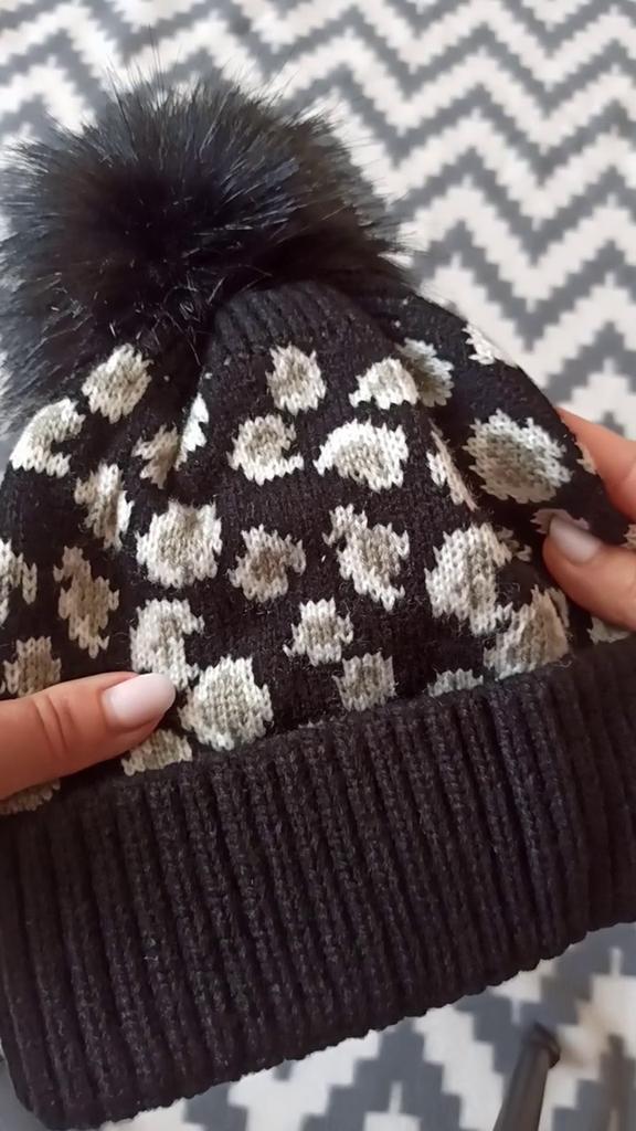 Frauen Herbst Winter Leopard Gestrickte Warme Große Wolle Ball Pullover Chic Hut