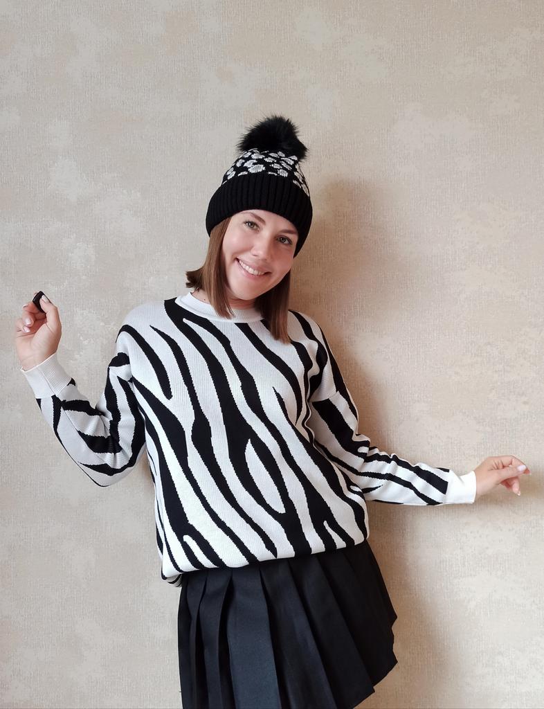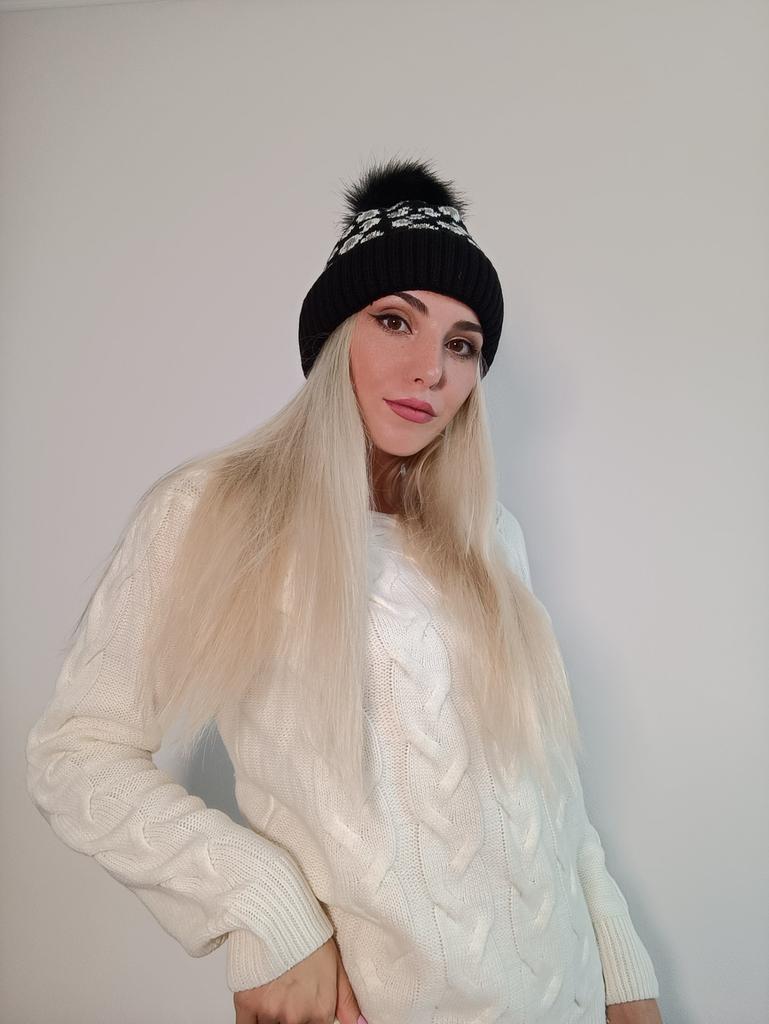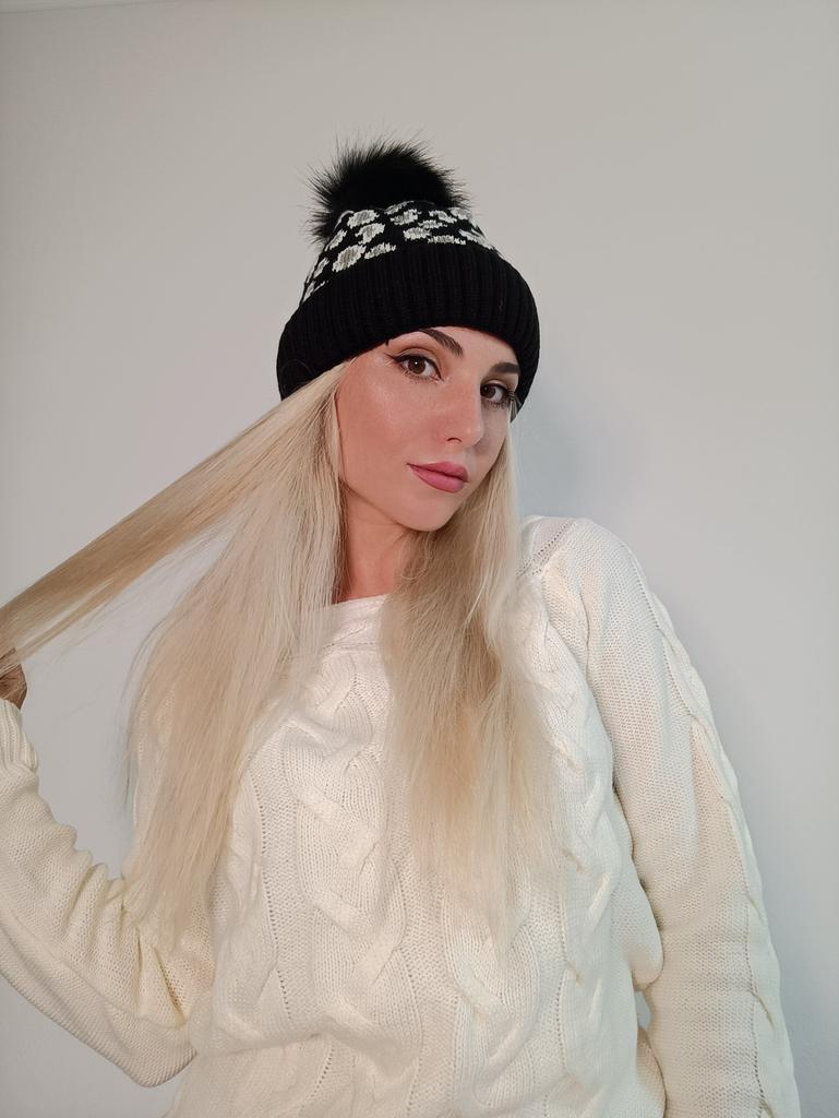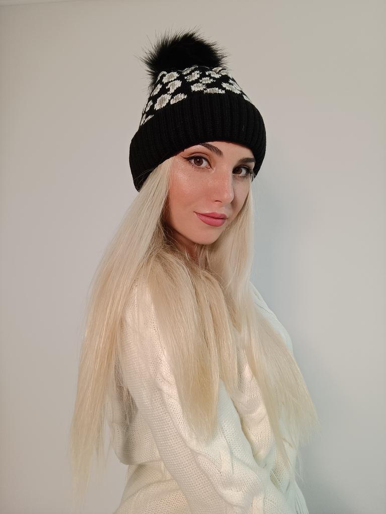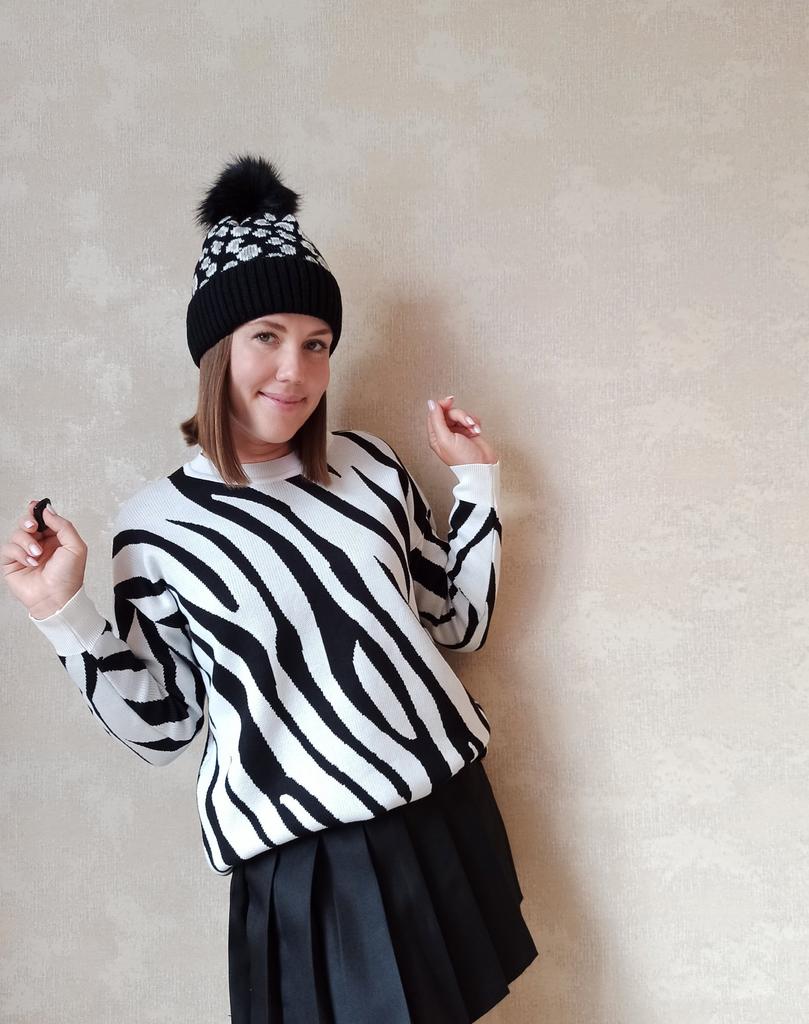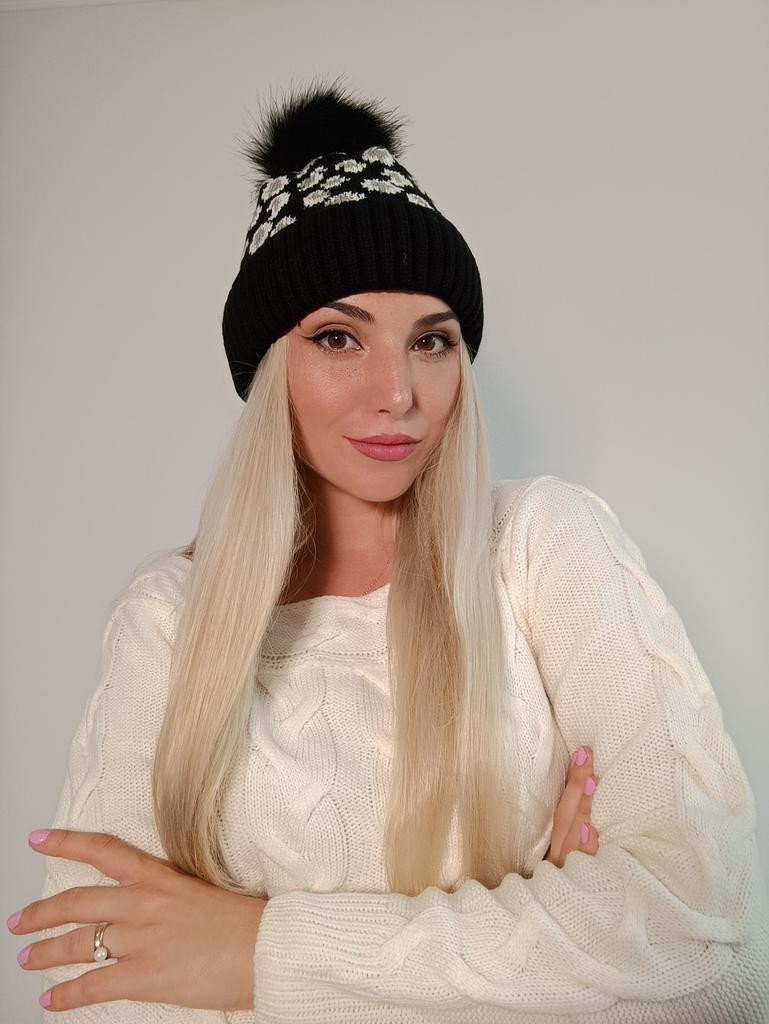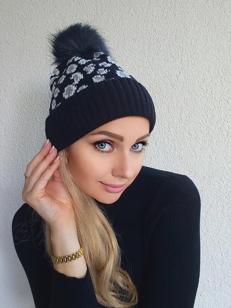 Frauen Herbst Winter Leopard Gestrickte Warme Große Wolle Ball Pullover Chic Hut