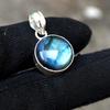 MATERIAL - 925 STERLING SILBER EDELSTEIN - Labradorit : Silbergew. 5,76 g : Anhängerlänge -0,5" : STEINFORM - Runder Cabochon : Farbe blau