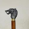 Spazierstock aus Holz mit antikem Wolfskopfgriff aus Messing, Vintage-Stil