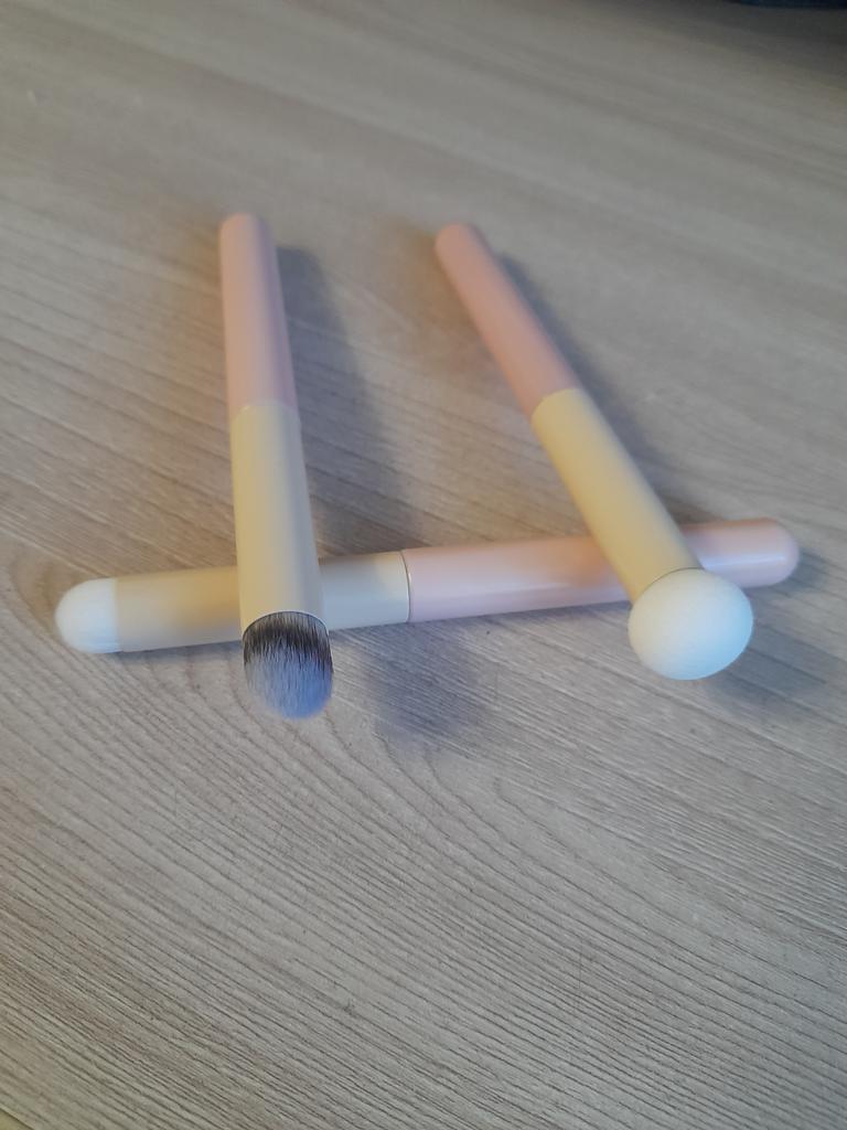 Diese Packung mit drei Pinseln ist großartig, einer davon ist ein kleiner Delta-Concealer-Pinsel für Hautunreinheiten, Akneflecken und Augenringe, nass verwendbar, und die anderen sind Kontur-Make-up-Pinsel. Sie haben eine hervorragende Qualität 😍