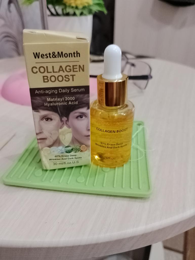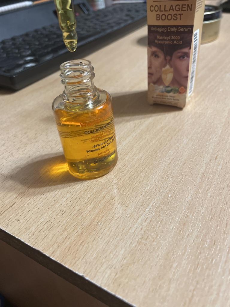 Ich habe dieses Serum ausprobiert. Leichte Formel, zieht schnell ein, klebt und fettet nicht. Besonders wichtig: Viele Seren/Cremes hinterlassen einen klebrigen Film auf der Haut.. Ein Effekt dürfte in etwa 4 Wochen sichtbar sein. Im Moment bin ich ganz zufrieden, dass es nicht fettet und meine Haut weich macht.