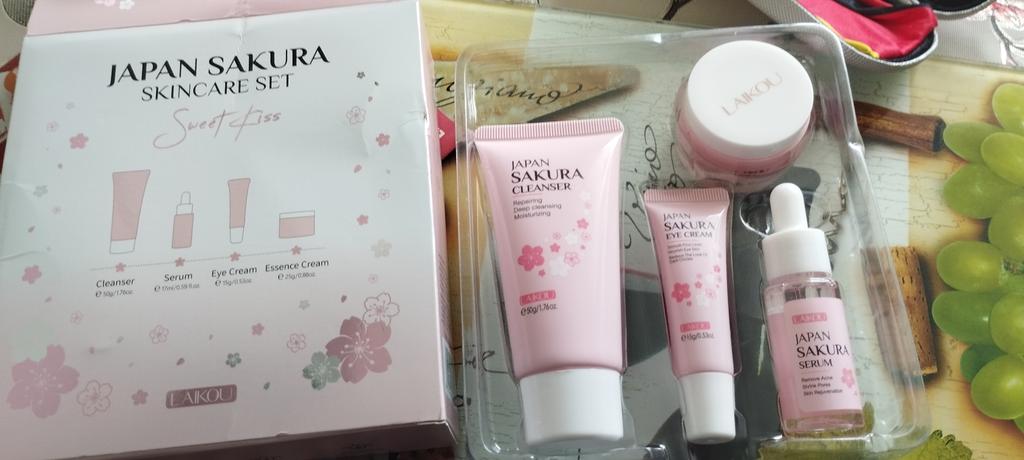 LAIKOU Sakura 4 teile/satz Haut Verjüngende Serum Aufhellen Hautunreinheiten Feuchtigkeitscreme Verblassen Dunkle Kreise Augen Creme