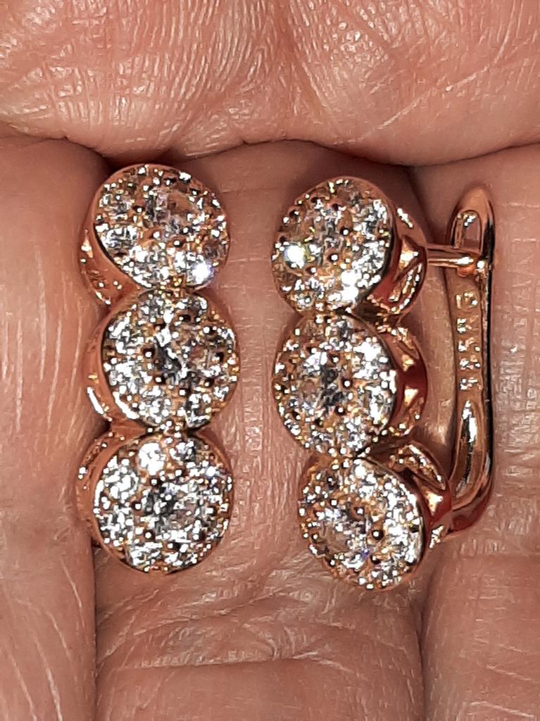 Hochwertiger Schmuck, der wie Schmuck aussieht. Alles ist wie auf dem Foto des Verkäufers. Wenn Sie dünne Ohrläppchen haben, benötigen Sie möglicherweise einen zusätzlichen Silikonstopfen, da diese konstruktionsbedingt nach vorne hängen können.