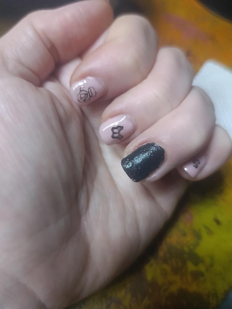 Wundervoller Effekt. Anwendung - Base (in der Lampe aushärten), Gel-Lack (in der Lampe aushärten), Craquelé (ohne Lampe trocknen lassen), Topcoat (in der Lampe aushärten).