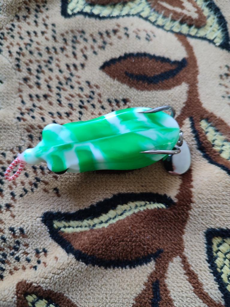 Ein guter Betriebseffekt muss immer noch den Frosch simulieren, der auf dem Wasser springt. Aber es muss langsam springen, um dem Fisch die Möglichkeit zu geben, zum Wasser zu eilen, um den Köder zu fressen. Wenn Ihr kleiner Frosch das Glück hat, von einem Fisch ins Wasser gezogen zu werden, geraten Sie nicht in Panik! Es dauert etwa 5 Sekunden, bis die Fische den Köder in ihrem Magen gefressen haben, bevor sie beginnen, die Stange heftig anzuheben! Denken Sie daran, dass die Stange stark, heftig und schnell sein muss! Wenn der Haken zu diesem Zeitpunkt in die Gräte des Fisches eingehakt werden kann, gehört der Fisch definitiv Ihnen!