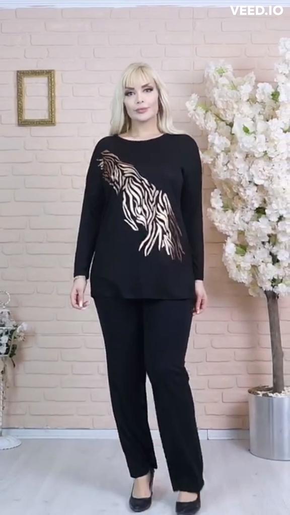 Fierte Damen Übergröße Bluse Bk23211 Rundhalsausschnitt Glänzendes Muster