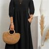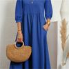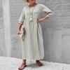 2022 Sommer Baumwolle Leinen A-Linien Maxi Kleider Frau Robe Femme Damen Elegant Mode Vintage Locker Uni Damenkleid Für Frauen