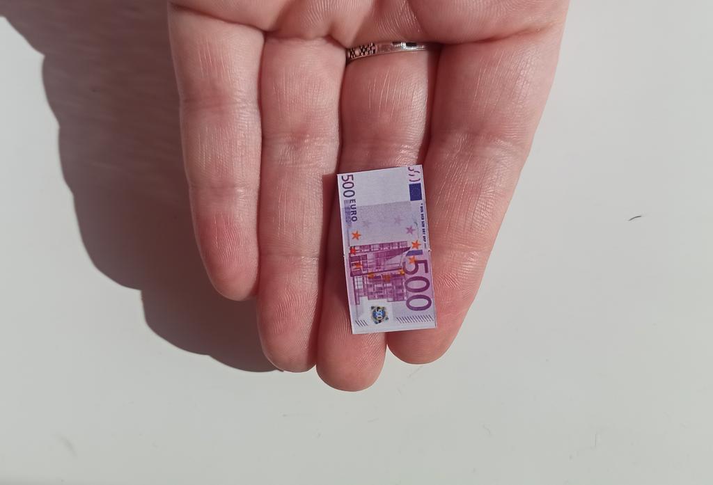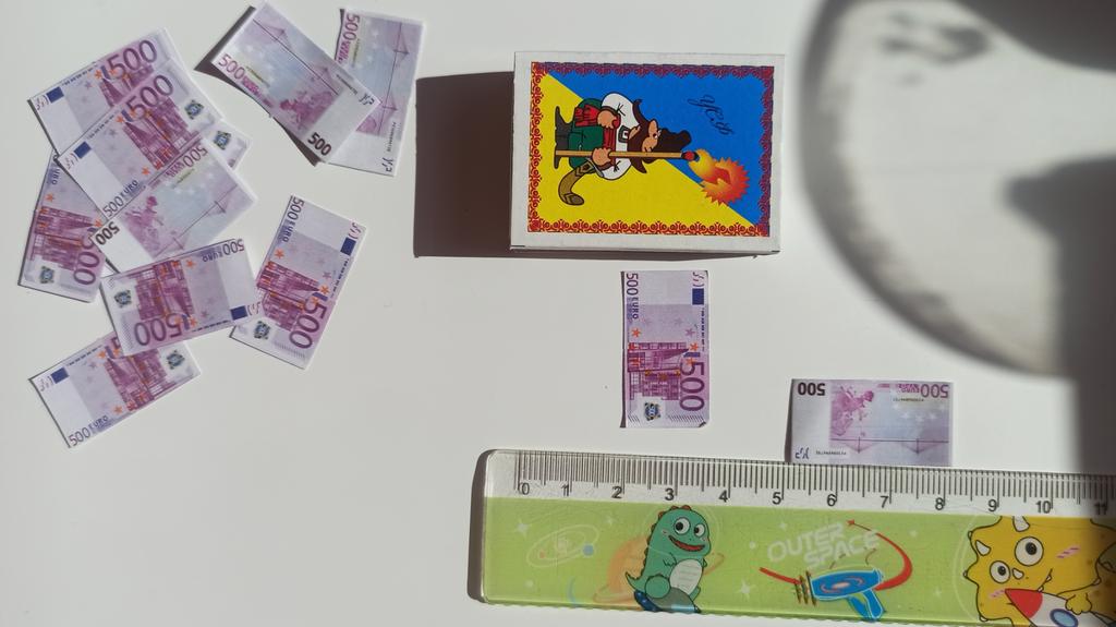 Miniatur-Puppengeld 3x1 cm. Aus dickem Papier ähnlich dünnem Kunststoff. Gutes Detail. In einer Packung sind 21 Scheine enthalten. Zu einem guten Preis.