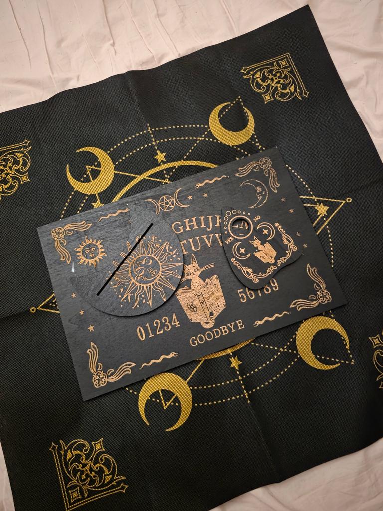 1. Reichhaltige Muster: Dieses schwarze hölzerne Geisterbrett hat 26 Buchstaben von A bis Z, Zahlen von 0 bis 9, mit mysteriösen Mustern und JA und NEIN-Wörtern, was das Spiel mysteriöser und interessanter macht.
