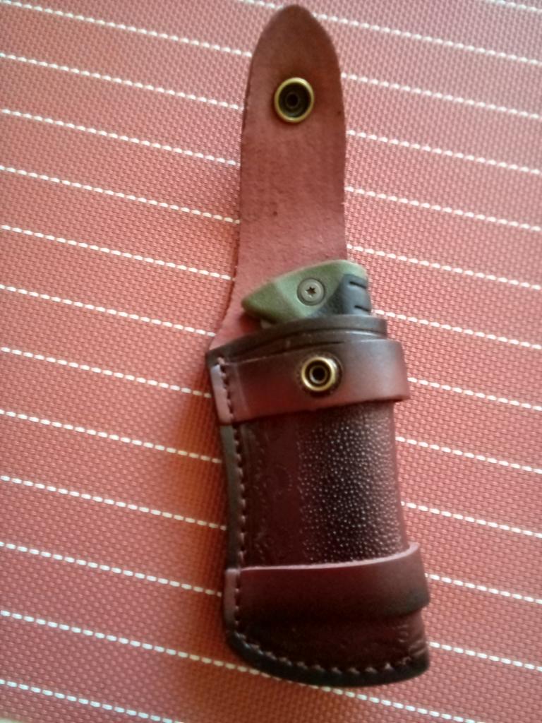 Etui für ein kleines Klappmesser. Der Look ist brutal. Die Montage ist gut.