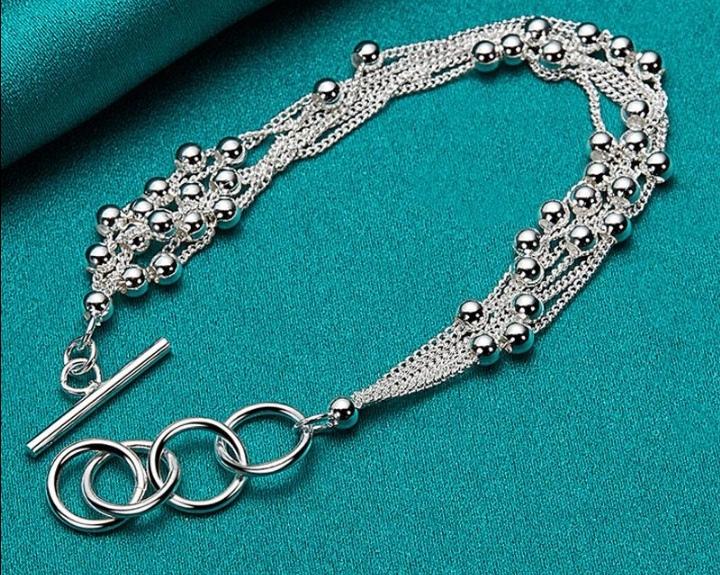 925 Sterling Silber Multi-Chain-Armband mit glatten Perlen, Modeschmuck MB047