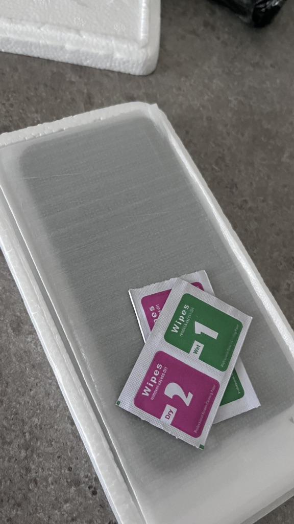 Das Glas kam ganz an, wenn man von der Seite auf den Bildschirm schaut, sieht man nichts, aber von oben ist alles sichtbar, dafür ziehe ich einen Stern ab