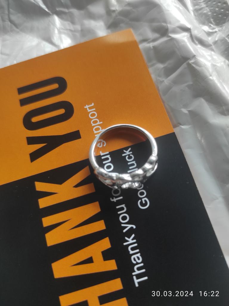 Der Ring ist ausgezeichnet! Ich werde ihn mit Freude tragen. Die Punze ist vorhanden, und weiter werden wir sehen, wie er sich beim Tragen macht.