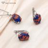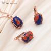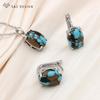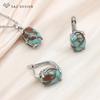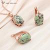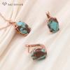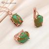 Mode Ei Form Oval Imitation Türkisen Verkrustete Ohrringe Schmuck Sets Für Frauen Hochzeit Rose Gold Farbe Anhänger Halskette