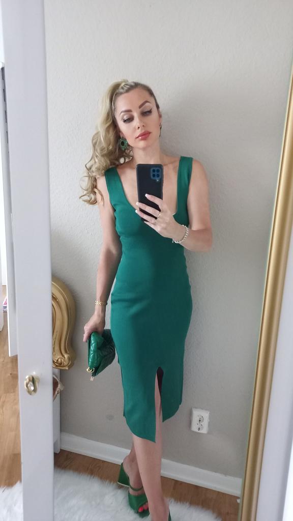 Damen Herbst Vintage Sexy Open Back Strickband Hohe Taille Schlank Split Kleid