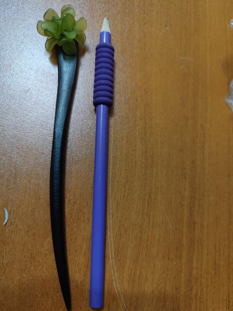 Holzhaarnadel, gut geschliffen, Blume aus gummiertem Kunststoff