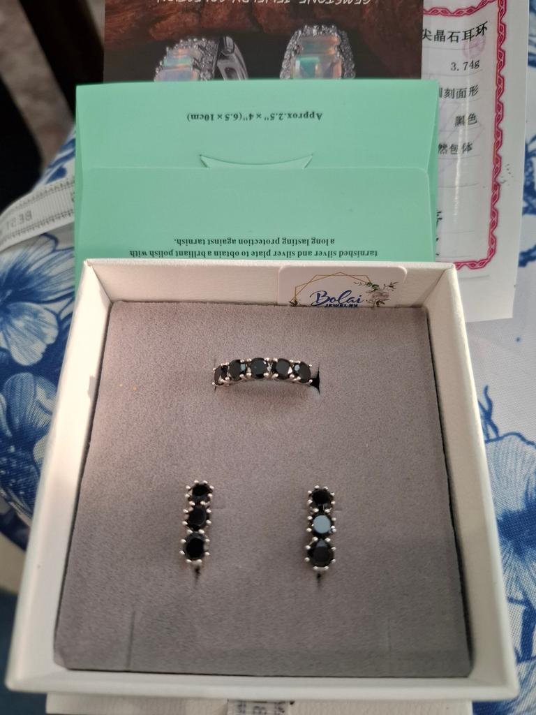 Bolaijewelry 925 Sterling Silber Klassisches Design Natürlicher Schwarzer Spinell Ring Ohrringe Schmuckset Frauen tragen täglich feine Geschenke