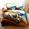 3D-Rennbahn-Motorrad-Bettwäsche-Set, Transportfahrzeug, Bettbezug und Kissenbezug, volle Größe, schnell trocknend, Heimdekoration für Jungenzimmer
