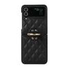 Mode Gitter Fingerring Hakenhalter Leder Handyhülle für Samsung Galaxy Z Flip 4 Zflip 3 5g Stoßfeste Klapphülle Fundas