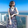 WTEMPO Damen Sommerkleid mit V-Ausschnitt, Strandkleid mit Urlaubsaufdruck, Bohemian-Taillenkleid, lockeres Temperament, Blumenkleid, Feenkleid