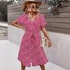 Frauen Blumendruck Langes Kleid Vintage Verband Einreiher V-ausschnitt Strandkleider Damen Boho Kurzarm Knopf Robe Vestidos