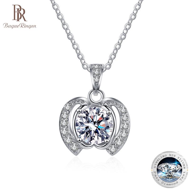 Bague Ringen Trend Damen 1 Karat Runder Moissanit Halskette Apfelförmiger Anhänger Schlüsselbeinkette Silber 925 Schmuck für Weihnachten