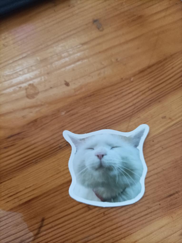 Matte Aufkleber glänzen nicht, die Qualität ist gut. Eine weitere Katze als Geschenk