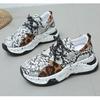 Neue Schuhe mit dicken Sohlen, Leopardenmuster, farblich passende Schnür-Outdoor-Sportschuhe, flache Mund-Damenschuhe