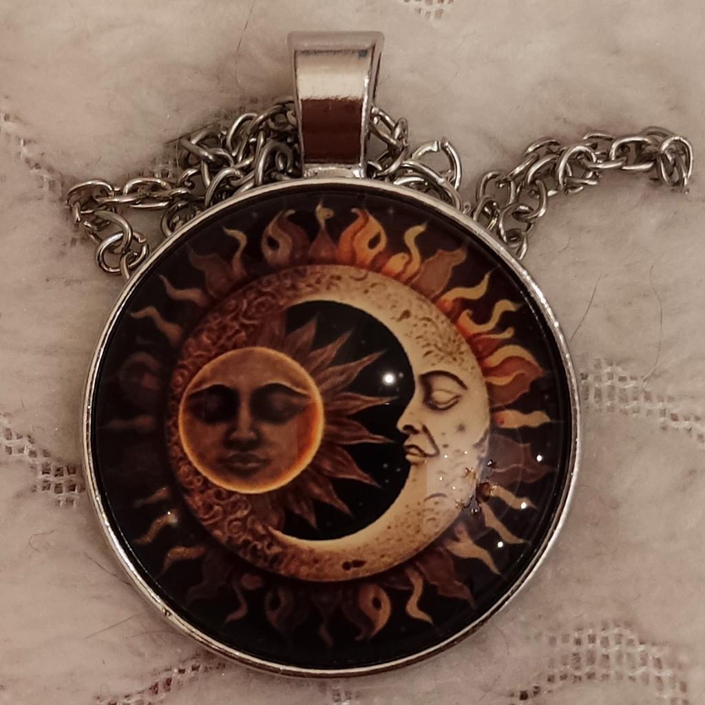 Auf dem Foto sieht es besser aus. Tatsächlich ist der Anhänger klein, Mond und Sonne sind nicht sichtbar