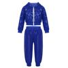 Kinder Jungen Mädchen Glitzernde Pailletten Langarm Hip Hop Jazz Street Dance Kostüme Langarm Kapuzenjacke Hosen Set