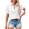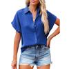 Damen Leinen-Kurzarmbluse, lässiges T-Shirt, Sommerurlaub, Damen-Fledermaus-Top