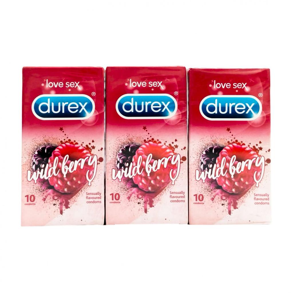 Das Set enthält 3 Packungen Kondome mit Waldbeergeschmack