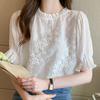 Sommer Frauen Tops Kurzarm Weiß Spitze Chiffon Hemd Mode Neue 2022 Süße Oansatz Bluse Frauen Kleidung J147
