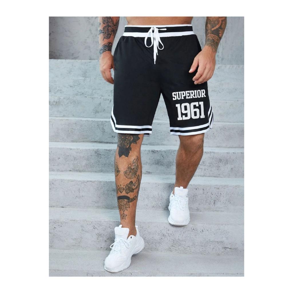 Schwarze Superior-Shorts mit bedruckten Streifen an der Taille und Beinen für Herren