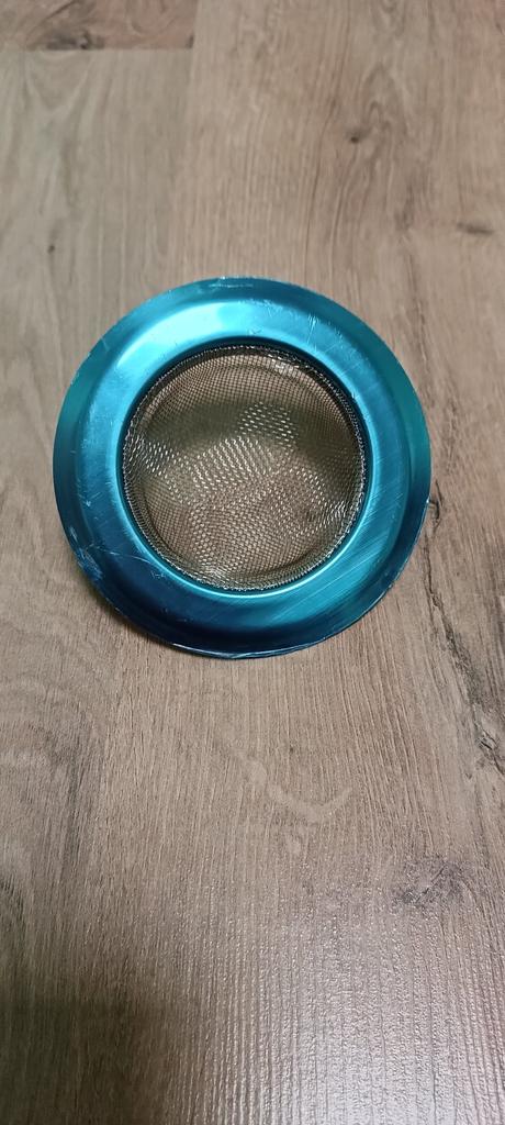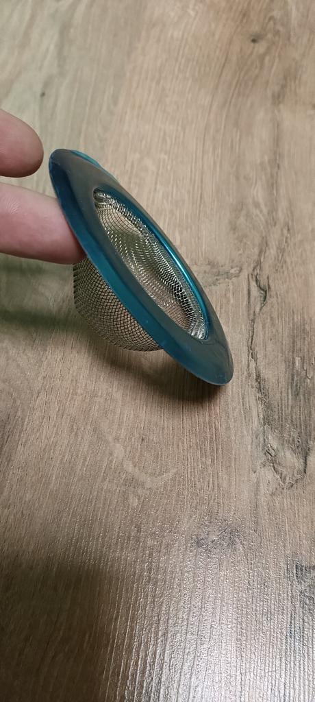 Das Sieb ist ok. Ich dachte, die Zellen wären kleiner. Aber das wird reichen. Ich trinke losen Tee und die Teeblätter sind klein. Wenn ich den Wasserkocher wasche, fliegen sie manchmal in die Spüle. Ich hoffe, dieses Sieb fängt sie auf. Ich habe die schützende blaue Folie noch nicht entfernt, daher ist sie auf dem Foto vorhanden.
