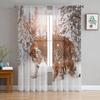 Wilder Tiger, der im Schnee spaziert, Winter-Tüllvorhänge für Wohnzimmer-Dekoration, Chiffon, durchsichtiger Voile-Vorhang für Küche und Schlafzimmer