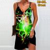 Damenmode Sexy 3D-Druck mit zwei leuchtenden Schmetterlingen, trägerloses Kleid, lockeres Leibchenkleid mit V-Ausschnitt