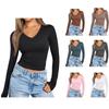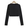 Schlanke Damenoberteile und Blusen mit V-Ausschnitt und langen Ärmeln und einfarbigem, offenem Nabel-Cardigan
