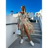 Boho-Blumendruck, langes Kleid für Damen, sexy, tiefer V-Ausschnitt, lange Ärmel, hoher Schlitz, Swing-Kleid mit Gürtel, elegante Strandkleider
