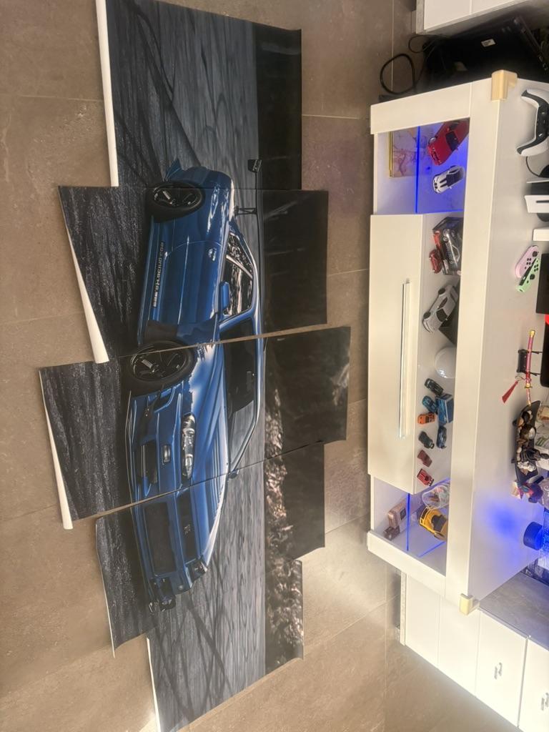 Ohne Rahmen, 5 Stück, Skyline, blaues, modifiziertes Auto, modularer Druck, Wandkunst, Leinwand, Poster, Bilder, Gemälde, Heimdekoration für Wohnzimmer