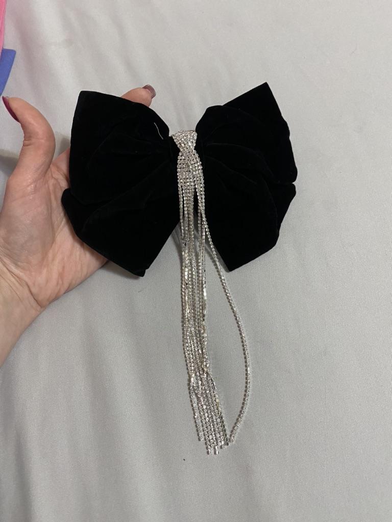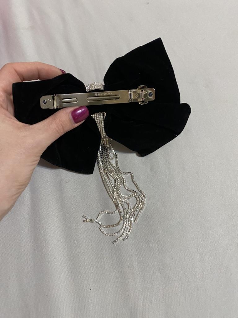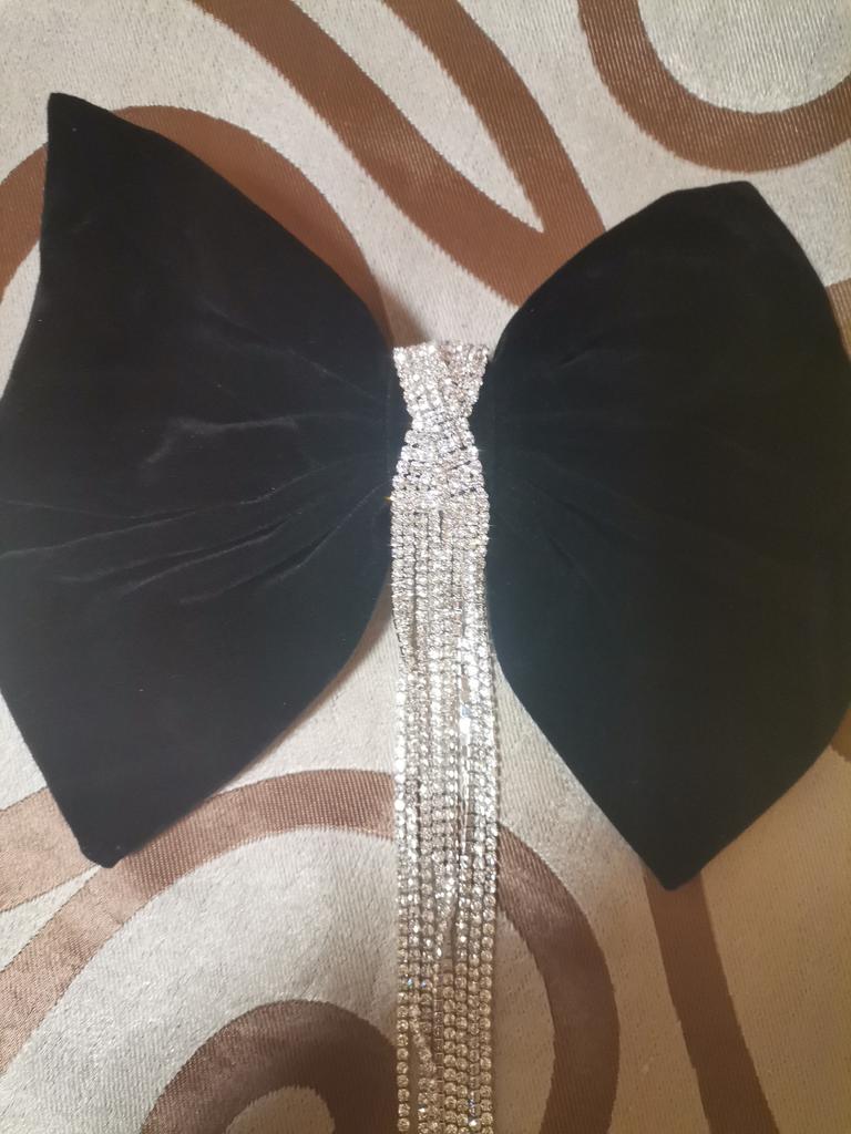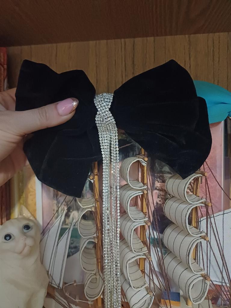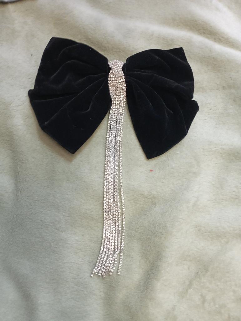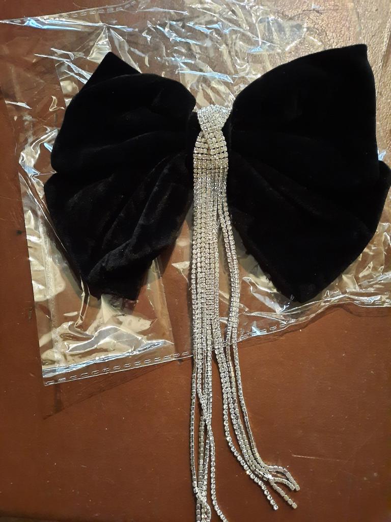 Die Haarnadel sieht sehr schön aus, Metall, langlebige Automatik, ein schwarzer Samtschmetterling, der seine Form behält, verziert mit einem Anhänger mit kleinen Steinen. Alles ist sehr ordentlich gemacht, die Steine funkeln im Licht, also eine sehr schöne Haarnadel. Ich empfehle.